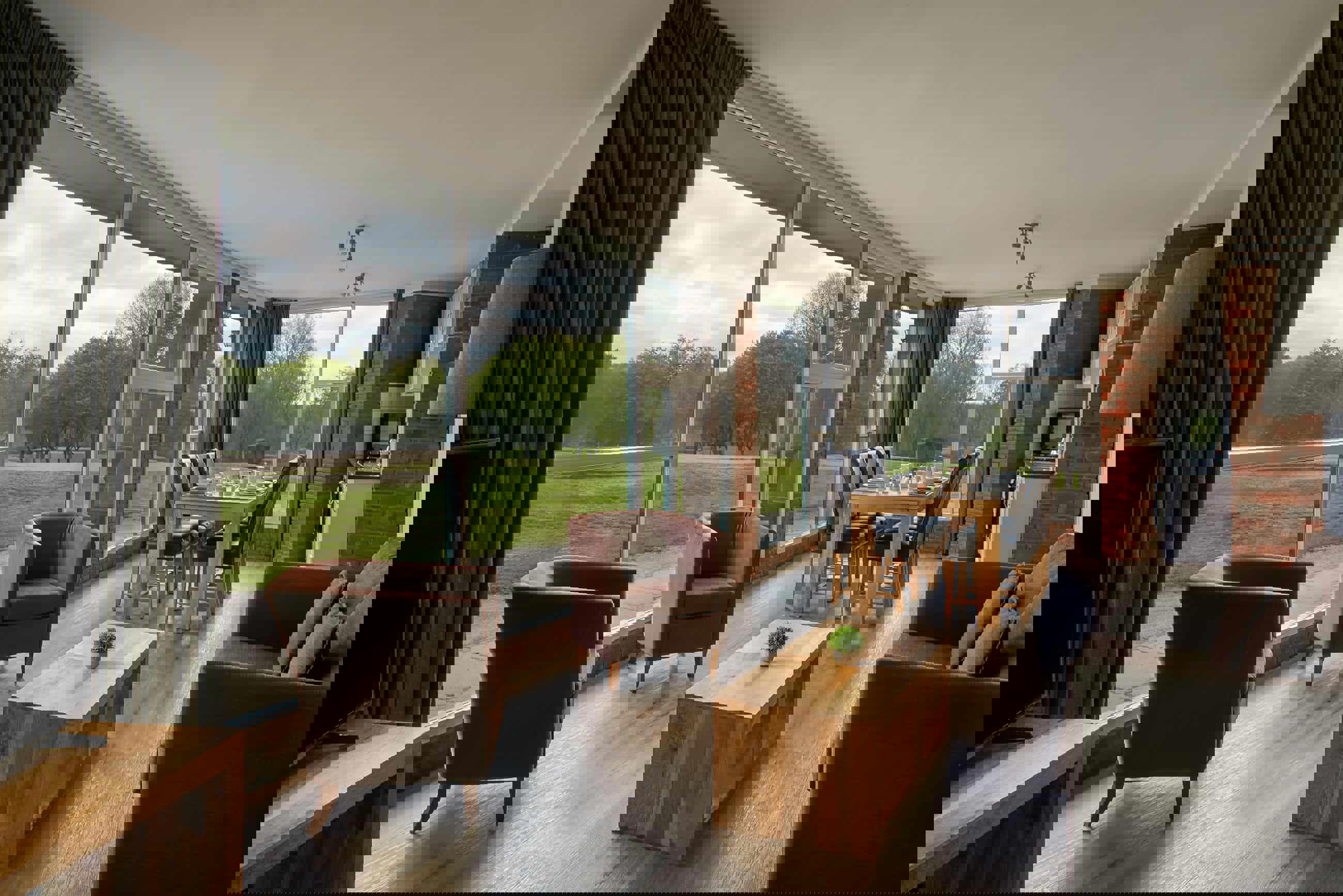 Our contemporary apartment is spacious and offer great flexibility with 1 double room and 1 twin room, spacious front room with kitchen, and fabulous views over the fantastic 120 acre parkland golf course. All with en-suite facilities including a bath and good natural daylight.